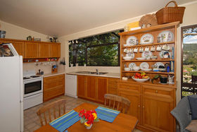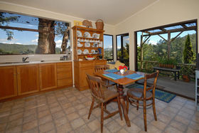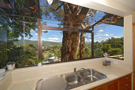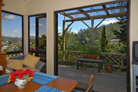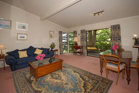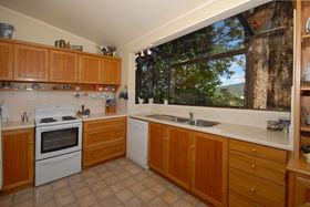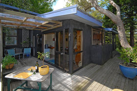 Dubbed 'The Tree-House' this unique 1980's built character home of 100m2 is nestled in amongst the trees for maximum privacy. Two double bedrooms, two bathrooms, it is modern and woodsy with a small lawn, sunny decks, fabulous birds-eye views and more trees, beautiful trees....