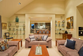The formal living and lounge areas have access to the stunning kitchen with scullery and this extends to the outside areas opening out to the North facing pool area with large Cantilever umbrellas, giving the home a truly relaxing, resort feel.