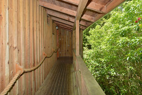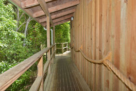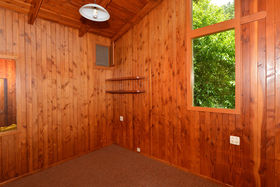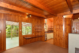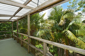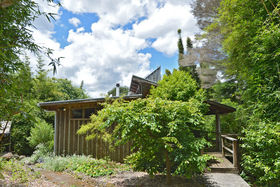 QUIRKY...FUNKY...ECO FRIENDLY... artfully minded with a touch of European influence. Navigate your way down the meandering path and over the pond to this two level rustic board and batten home with double carport. Upstairs is open plan living with a large deck overlooking subtropical gardens plus a country kitchen, 2 double bedrooms, bathroom & separate toilet and its own ventilation system throughout the house. Downstairs is the laundry with internal access with loads of storage plus a separate guest or hobbies room with its own shower & toilet with a kitchen unit with a private covered entry.