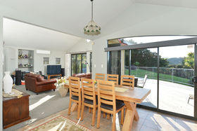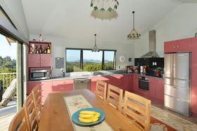 Versatile home with many options. Five bedrooms, plus a rumpus above the garage, means space and privacy for all. Two character bathrooms for a busy family . Set on 3.6ha of bush and open lawn, at the head of a forested gully.