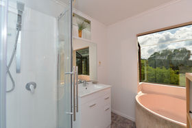UPSTAIRS - features three double bedrooms, new shower cubicle and a cute tub with a bay window capturing views with relaxation in mind!