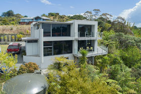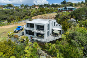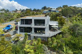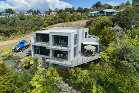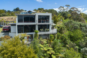 Ground floor offers open plan living, gas heating, plus heat pump. Luxurious kitchen with quality appliances and under-floor heating. Two double bedrooms, master with ensuite, two toilets, plus guest bedroom and bathroom. An abundance of storage solutions. Indoor/outdoor flow onto a large sundrenched deck with beautiful vista views of the bush and Marina.