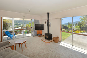 Exuding a relaxed feel-good vibe with room for the tribe in three bedrooms, single bathroom and sunny outdoor living extending from open plan kitchen, dining and lounge complete with log burner and hill views.
