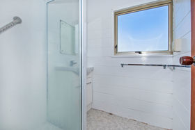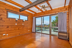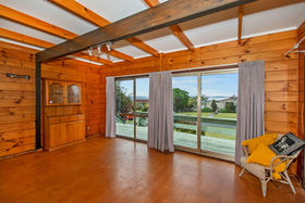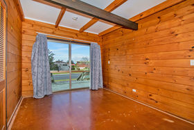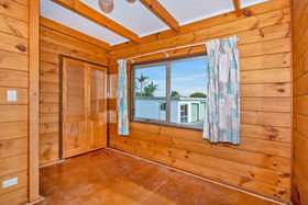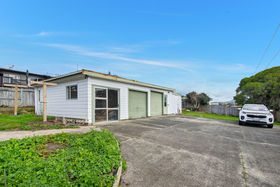 Follow the concrete driveway up behind the house to find a separate shed with two roller doors and a spare room on the side.