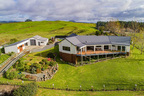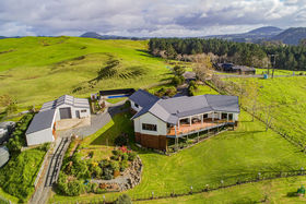 With views across all nine paddocks from its elevated position, this modern executive home features expansive living, and a great outdoor flow. The large formal lounge and dining/living area is serviced by a high-quality kitchen with stunning stone bench tops and quality appliances. The meticulously maintained home is loaded with extras including three heat pumps and wired for surround sound.