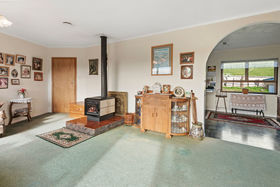 Middle level - boasts a warm and sunny lounge making the most of the winter sun, centralized Kent styled fire, open plan dining room combined kitchen, three double bedrooms, bathroom, separate toilet, laundry.