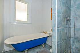 Consisting of three good sized bedrooms, with a covered verandah off the master, bathroom with a claw bath and tiled shower box, open plan lounge/dining/kitchen and a large deck. The majority of the wooden joinery has been replaced with double glazed aluminium windows.
