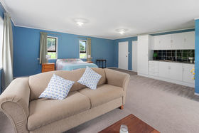 But wait there's more! There is a sleepout attached to the external double garage (The COA for the sleepout is underway at Council & will be obtained prior to settlement). In here is a large open lounge & living area, with a heat pump, oven, washing machine and fridge freezer. A fabulous area for extended family or teenagers.