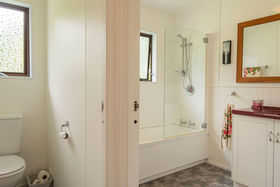This home has many features & needs to be explored to see all that is on offer. The lounge is spacious & opens up to the covered front deck, great for BBQs, entertaining & watching the running around. The kitchen is modern, light & bright, accommodating appliances & lots of storage - including a handy wine rack! There is a separate office, laundry area & a large family bathroom with shower, bath & toilet. Each bedroom is generous with wardrobes but wait until you see the master bedroom! It's HUGE & can accommodate further seating, has a walk-in wardrobe & ensuite. A fireplace, HRV & 2 heat pumps will help keep the house cool in summer & warm and dry in winter. From the dining area, there is another covered deck area that leads out to the back of the property.