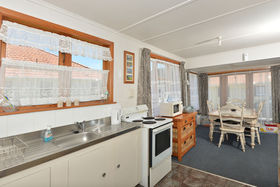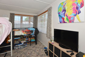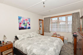 This 1940s 2-bedroom bungalow has a sun lounge, along with open plan living, with double doors leading off the lounge to very spacious back lawn with a lockable single garage and shed with additional parking. This is a 100m2 home with a land area 779m2